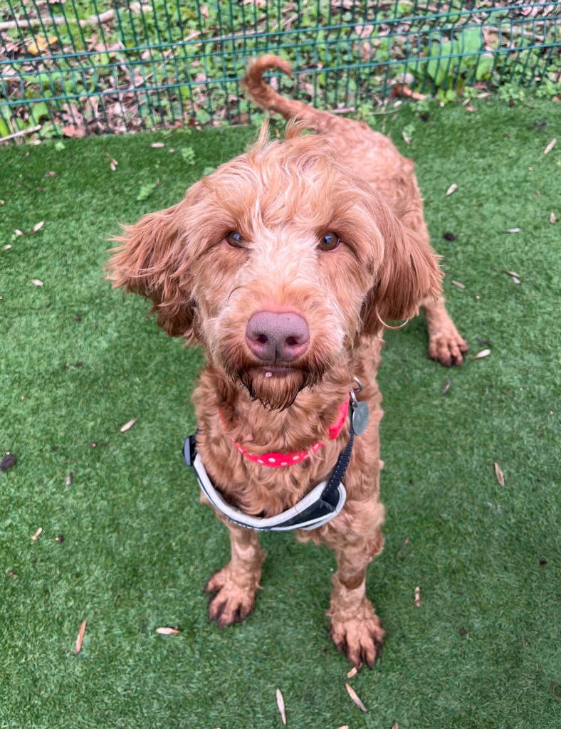 FOSTER TO ADOPT Ginger-snaps is looking to go home with her sister Custard cream or she needs to go home with another dog as she is more confident in the company of other dogs. Ginger came from a multi dog household so hasn't had much experience of the outside world so can be quite a worried girl. For this reason she will need an adult only home with experienced owners to help her flourish! Once ginger knows you she is very affectionate and enjoys being in your company. She is currently learning to walk on a lead which she is doing excellent at.