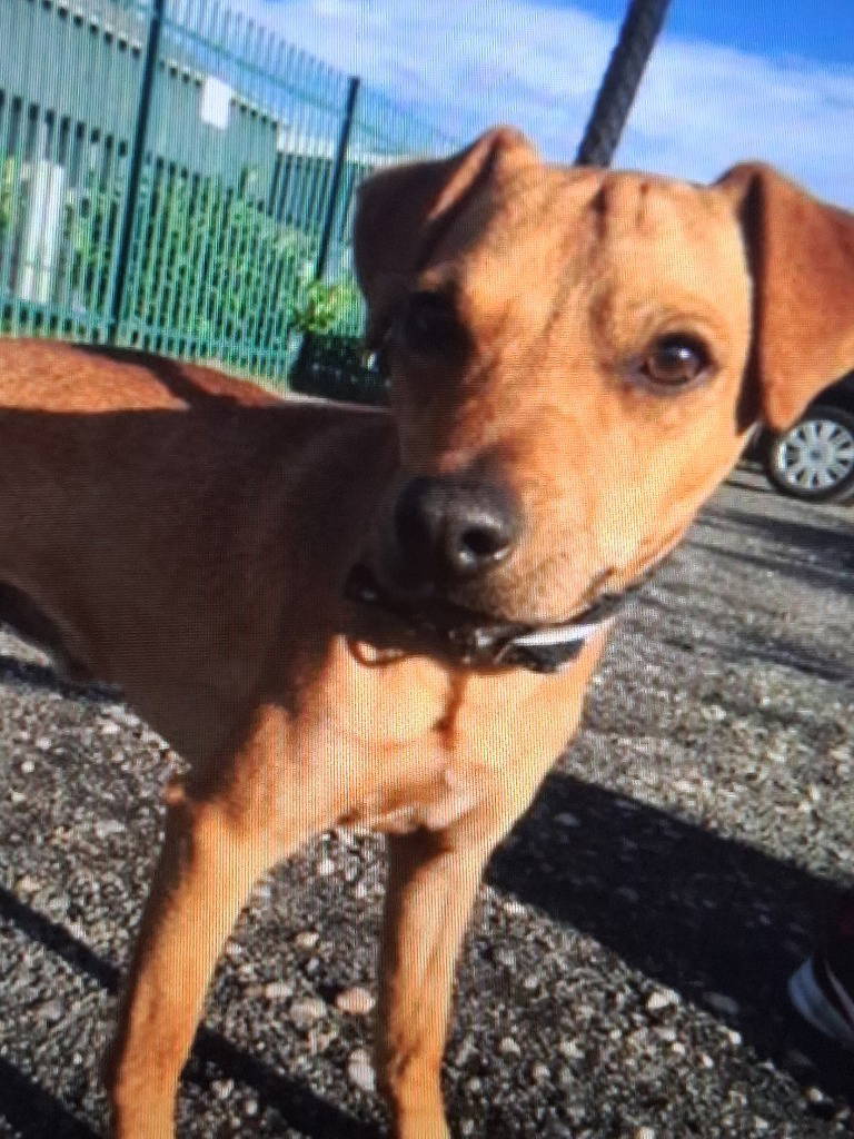As a case dog, Queenie is looking for a foster home with experienced owners. She will always need to be muzzled in public & kept on lead, so it is important for that a foster home has a secure garden for her to play in. At Woodside, she has shown some reluctance in walking in certain areas, so fosterers must be aware of this & keep her to a routine (you may need to pick her up on occasion)! Queenie is very loving, she enjoys cuddles & meeting new people. She can not be fostered around children, visiting or otherwise, & can not be around dogs or other animals. As a case dog, she will need to come back to the centre for monthly health checks, so fosterers will need to be able to accommodate that.
