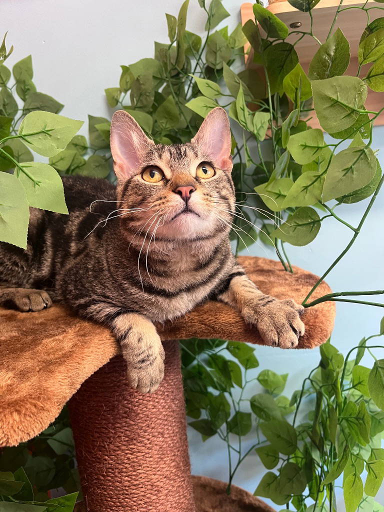 Stanley needs an adult only home and must be the only pet. Stanley is a very handsome cat full of life and personality! Initially a nervous boy, his confidence quickly shone through and he became this loving, fussy, cheeky and incredibly playful cat who loves nothing more than time spent with the staff. He is very energetic and will spent hours chasing about his favourite toys or exploring new places. Due to how nervous he can be initially, Stanley is best suited to an adult only home where he will need a spare room to best help him settle. Stanley will need access to the outdoors after his settling in period so he can have his adventures!